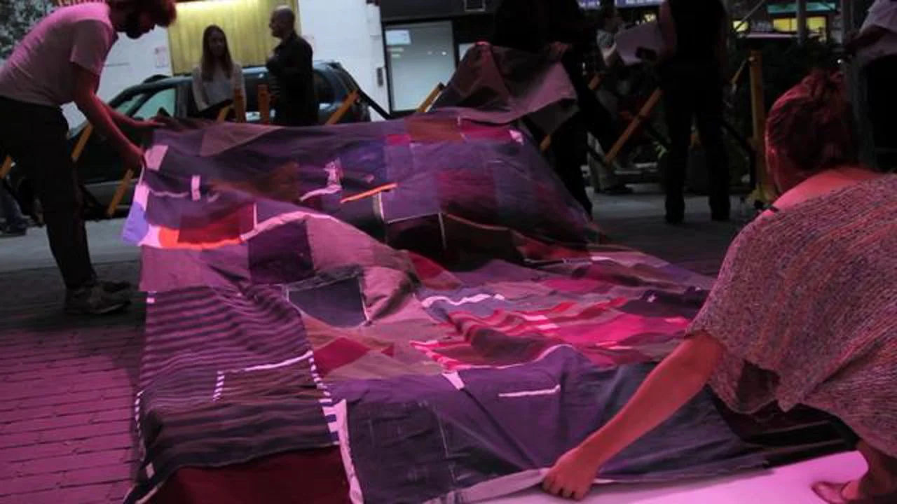 300 hand-made screen-printed t-shirts made with thermochromic pigments that changed from black to a rainbow of colors with human contact. Installation also included a large play space that was similarly activated by human touch as part of the Love Night Party.